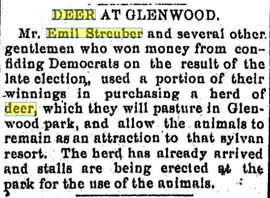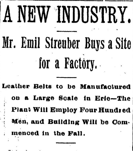Eventually the family expanded the business and built a belt factory between East 21st St and the Nickel Plate Railroad on 19th Street, between Holland and German. Emil also owned stone quarries. Emil was an animal enthusiast, having many pets, livestock, and wild animals, including various deer, rats, monkeys, reptiles, rare birds and a stocked aquarium. He once purchased a herd of deer to reside in Glenwood Park, for them to be an attraction to the “sylvan resort.” He would often put on animal displays for the children in nearby Sarah Reed’s Home for the Friendless and St. Joseph’s Orphan Asylum. The couple had three children, Albert, Arthur, and Harriet.